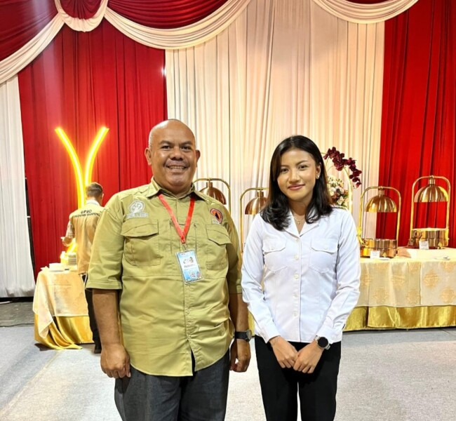Ketua FPRB Kabupaten Kupang Elfrid Saneh dan Wakil Bupati Kupang Aurum Titu Eki saat mengikuti malam puncak PRB di Mojokerto pekan lalu.