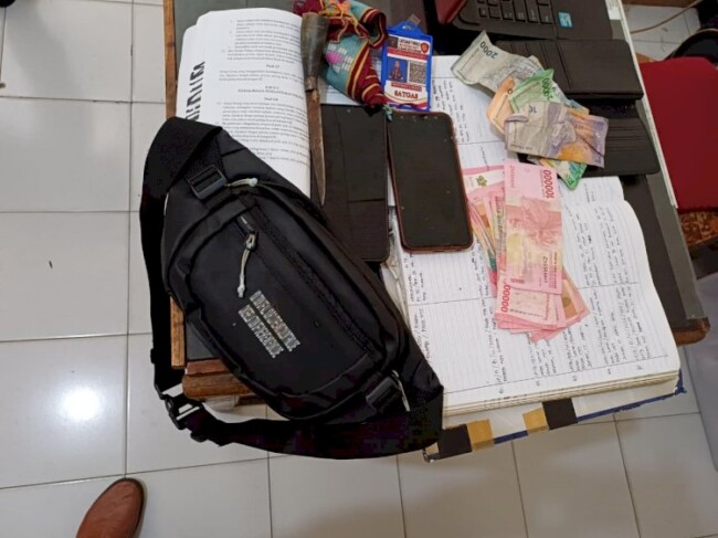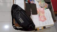 Selain mengamankan dua buah helm hasil curian, saat menggeledah tas milik pelaku, polisi juga menemukan sebilah pisau bergagang hitam, dua unit ponsel, serta uang tunai sebesar Rp1.489.000.