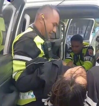 Tanpa membuang waktu, keduanya langsung melakukan tindakan evakuasi, dengan sigap mengangkat tubuh Aprianti ke dalam mobil patroli dan melesat menuju Rumah Sakit Leona Noelbaki.