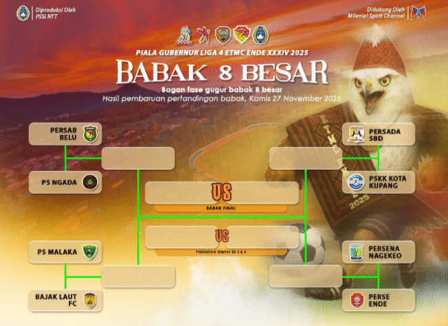 Berdasarkan hasil pembaruan pertandingan Babak 16 Besar hingga 27 November 2025, babak 8 besar akan menyajikan empat duel krusial yang diprediksi akan berlangsung penuh kejutan di Stadion Marilonga, Ende.